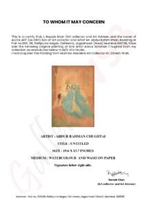 All Rights Reserved. This artwork, titled “Untitled” is an original piece created by Abdur Rahman Chughtai. All rights to the artwork are owned by the GalleriaVSB. Distribution, display, or any other form of unauthorized use of this artwork is prohibited.