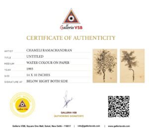Chameli Ramachandran’s paintings beautifully capture nature’s essence with delicate brushwork and minimalism. The left artwork depicts intricate, flowing branches symbolizing balance, while the right embraces simplicity, focusing on form and negative space. Combining Eastern calligraphic traditions with modern aesthetics, her earthy tones and serene compositions reflect nature’s timeless beauty and meditative calm.