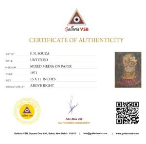All Rights Reserved. This artwork, titled “Untitled” is an original piece created by F.N. Souza. All rights to the artwork are owned by the GalleriaVSB. Distribution, display, or any other form of unauthorized use of this artwork is prohibited.