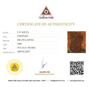 All Rights Reserved. This artwork, titled “Untitled” is an original piece created by F.N. Souza. All rights to the artwork are owned by the GalleriaVSB. Distribution, display, or any other form of unauthorized use of this artwork is prohibited.