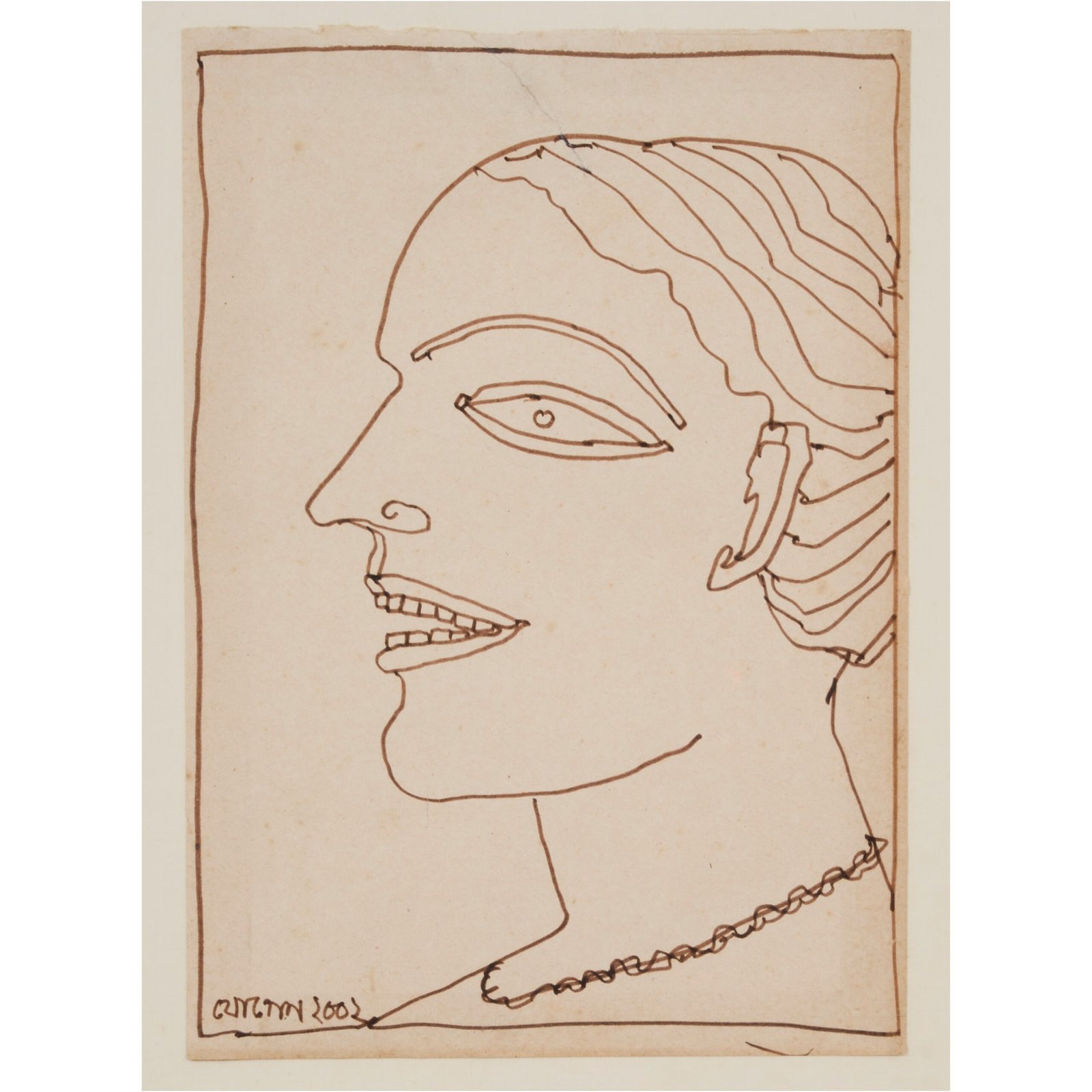 Jogen Chowdhury, a prominent Indian artist, is known for his distinctive style that blends folk and tribal art. His use of bold lines and expressive strokes captures the essence of his subjects. The depiction of a laughing woman’s face may symbolize joy, celebration, or the resilience of the tribal community.