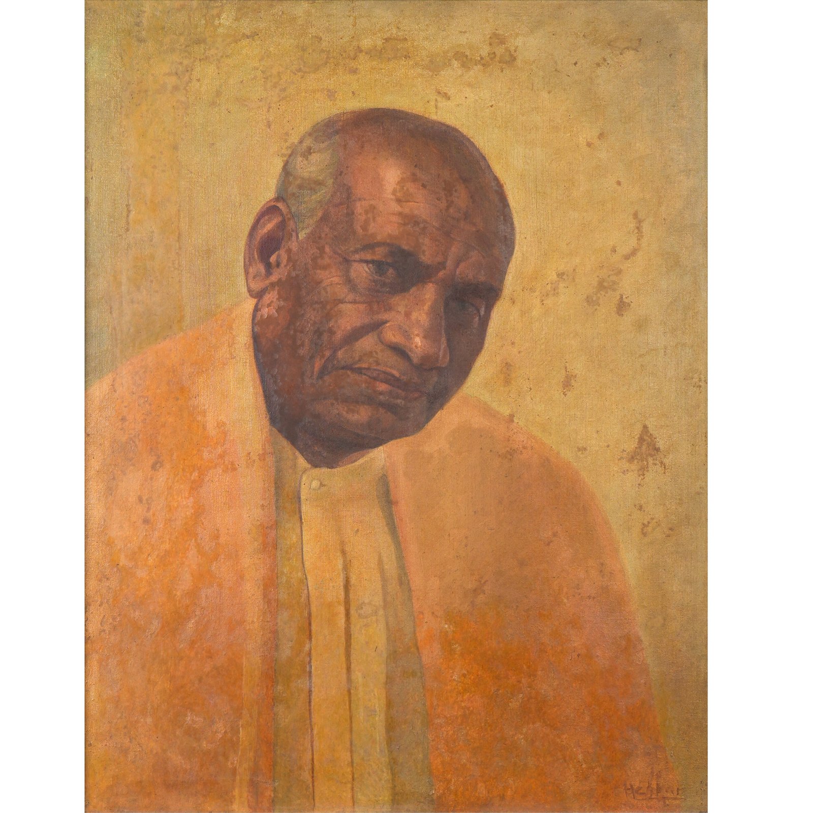 This realistic portrait of Sardar Vallabhbhai Patel captures his resolute gaze and strong features with precision. The warm tones of browns and yellows convey wisdom and authority, while the muted background emphasizes his prominence. Meticulous brushwork reflects Patel’s strength, making this a powerful tribute to his legacy and role in India’s independence.