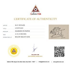 All Rights Reserved. This artwork, titled “Untitled,” is an original piece created by M.F. Husain. All rights to the artwork are owned by the GalleriaVSB. Distribution, display, or any other form of unauthorized use of this artwork is prohibited.