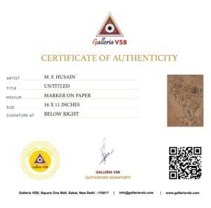 All Rights Reserved. This artwork, titled “Untitled,” is an original piece created by M.F. Husain. All rights to the artwork are owned by the GalleriaVSB. Distribution, display, or any other form of unauthorized use of this artwork is prohibited.