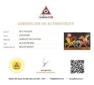 All Rights Reserved. This artwork, titled “Untitled” is an original piece created by M.F. Husain. All rights to the artwork are owned by the GalleriaVSB. Distribution, display, or any other form of unauthorized use of this artwork is prohibited.